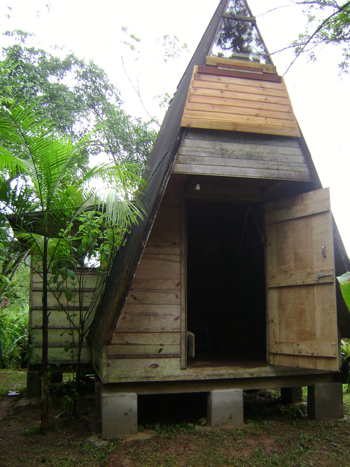 O Chalé possui colchao de casal na parte superior com mosquiteiro, sala com ventilador e sofá cama, banheiro quente, cozinha com geladeira e fogao + utensilios para 4 pessoas. Área externa com ducha e espaço para churrasqueira.